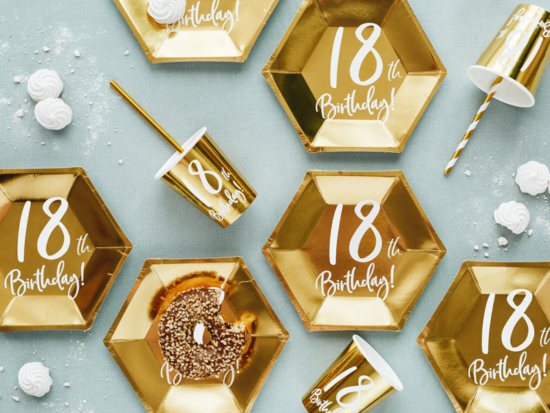 ΧΑΡΤΙΝΑ ΠΙΑΤΑ, “18TH BIRTHDAY”, ΧΡΥΣΟ, 20ΕΚ, 6ΤΕΜ